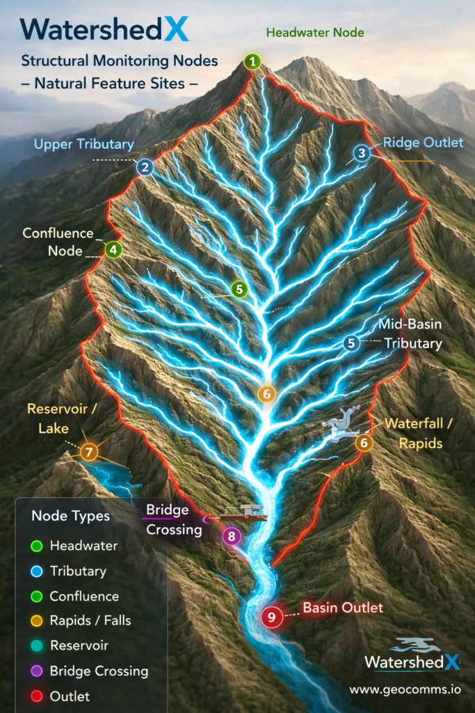 OpenHUR is a digital watershed infrastructure framework that organizes river basins into structured hydrologic networks, enabling monitoring, analysis, and decision support through a geospatial SaaS platform.